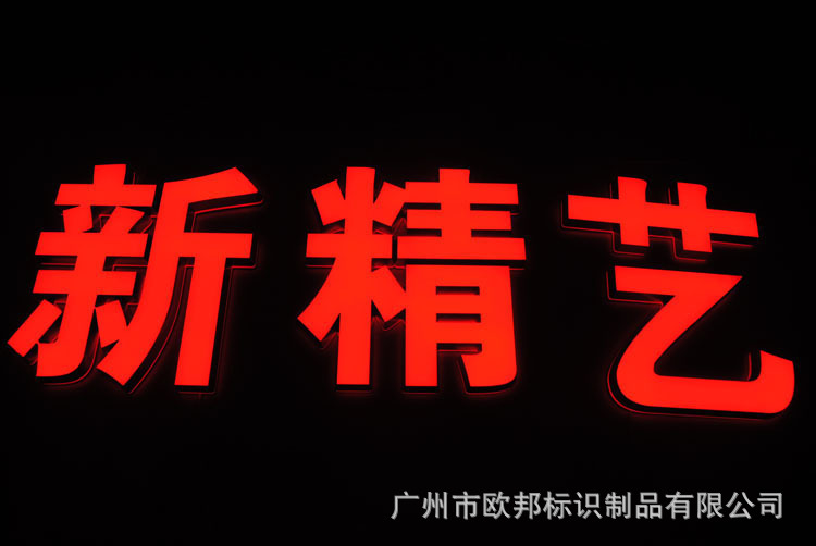 用透光20MM或者18MM的亚克力做字的面板,采用5MM或者3MM的亚克力做字的底板,雕刻机雕刻成形字体,围边采用油漆喷边,内装高光LED灯,LED灯颜色随客户要求而变或配合面板颜色而选用不同的颜色。