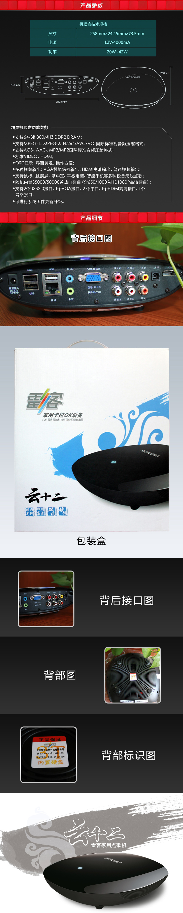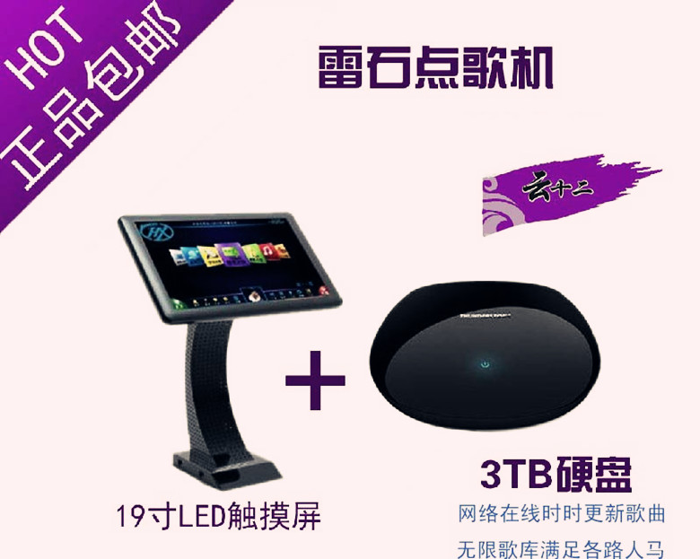 雷石: 雷客云十二高清机点歌顶盒+3000G硬盘带7万多首最新歌库(1台)