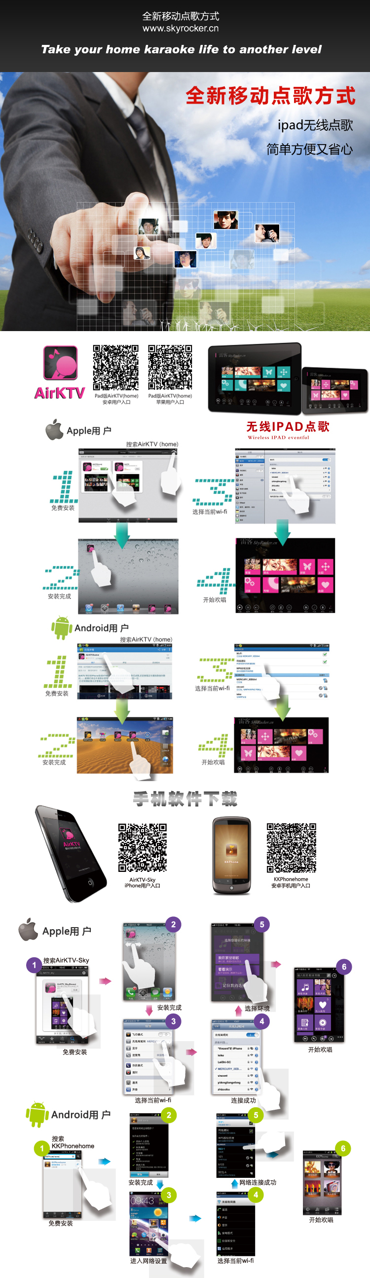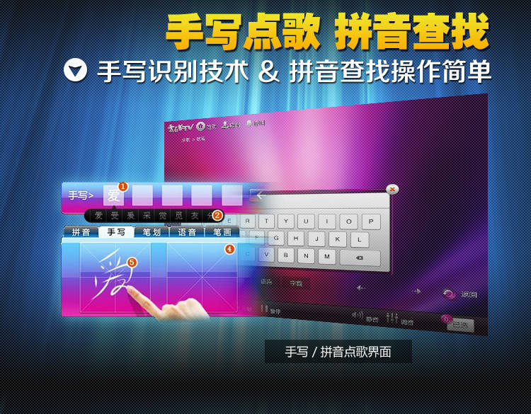 ·支持鼠标、触摸屏、掌中宝、平板电脑、智能手机等多种无线点歌设备