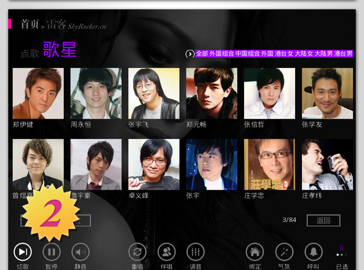 采用WinPhone时尚点歌界面设计,同时支持多达3种语言,界面语言模块可任意切换哦!