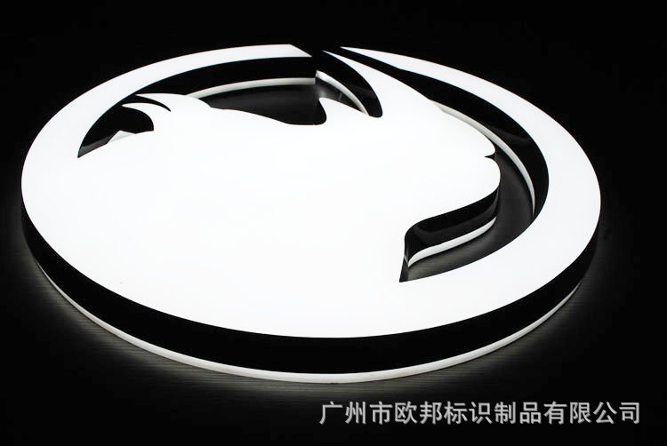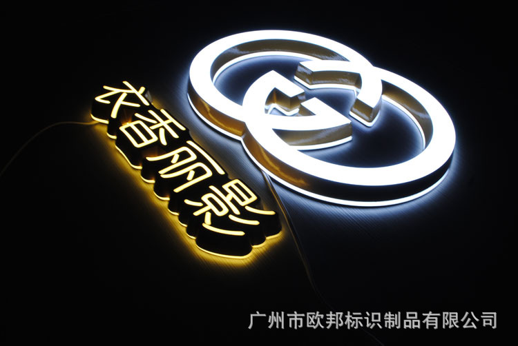 用透光20MM或者18MM的亚克力做字的面板,采用5MM或者3MM的亚克力做字的底板,雕刻机雕刻成形字体,围边采用油漆喷边,内装高光LED灯,LED灯颜色随客户要求而变或配合面板颜色而选用不同的颜色。