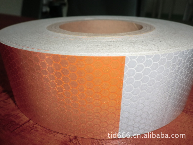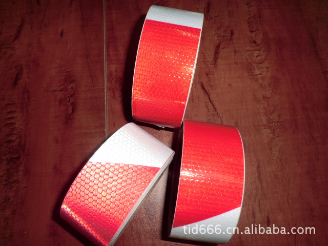 我们也有进一步加工的产品。如晶彩格反光膜制作的红白车身贴。高强级反光膜制作而成的车身贴。