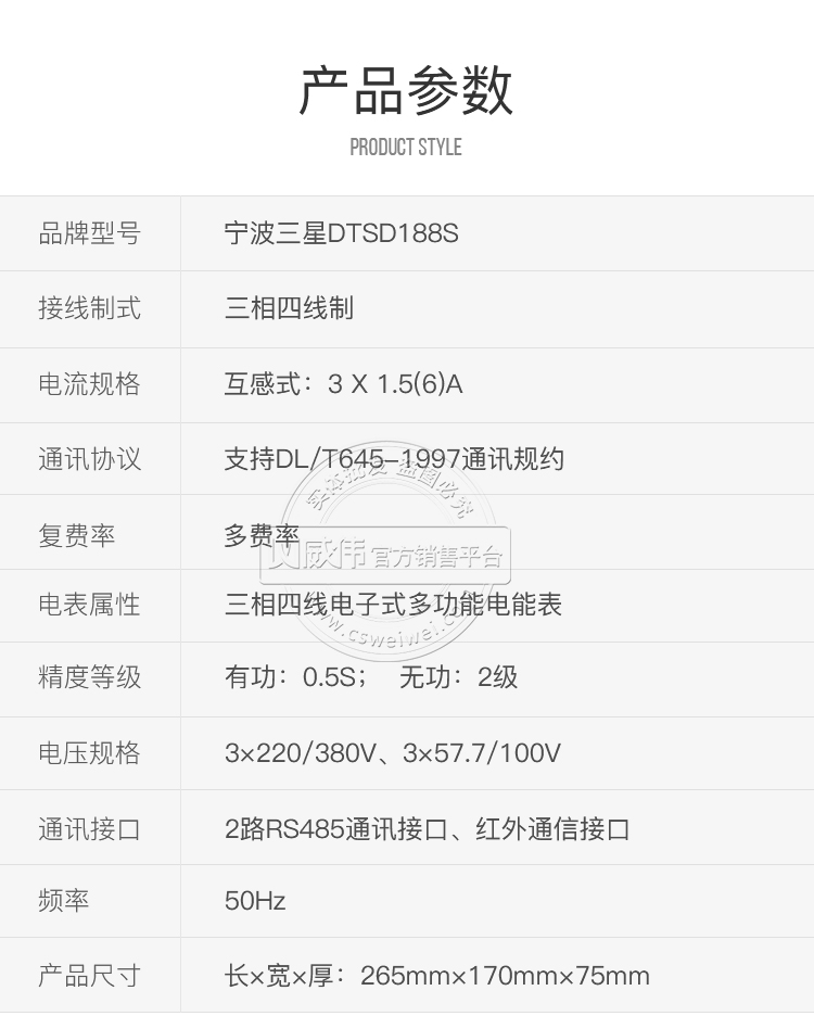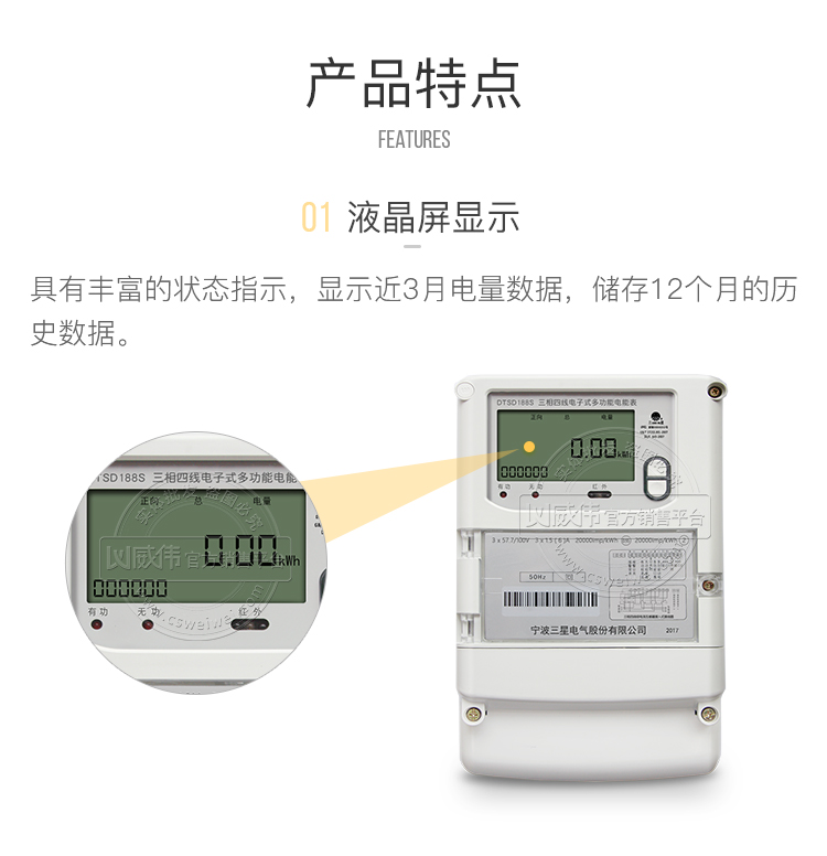 该表的主要特点是计量模块敏感度高,计量精准;该表由上市公司(宁波三星电气股份有限公司)生产,质量有保证,经过长期稳定,产品可靠性高。
