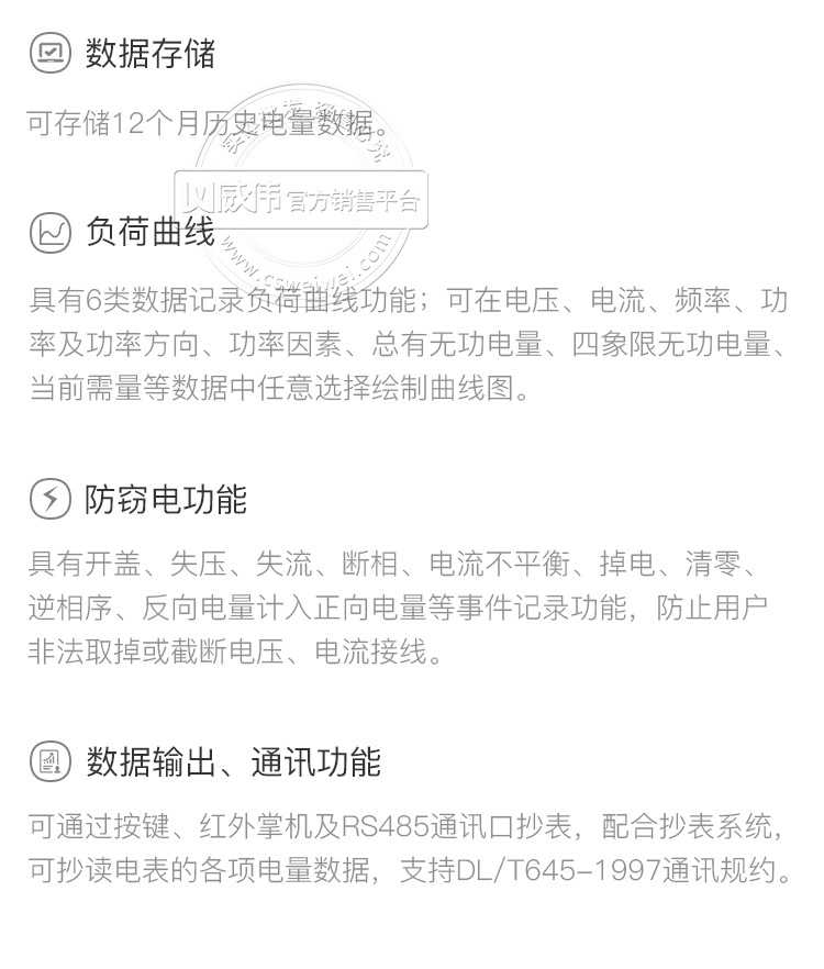 2、具有强大的防窃电功能,能够有效避免因窃电现象给供电方带来的损失。