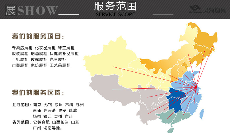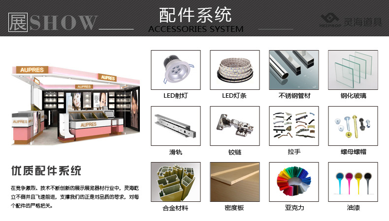 【展柜适用场所】:品质展示展柜适合珠宝专柜,饰品专柜,精品专柜,参茸专柜,服装货架服装展柜适合品牌零售商的商铺或商场里面各种高档展示展柜 。