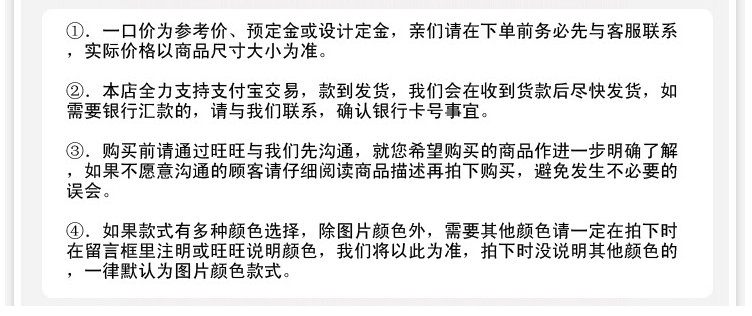 特别注意:因为柜台涉及到物流运输,可能运输过程中会出现一些问题,特别介意的买家甚拍!请发现问题后及时与我们联系,我们会积极配合处理问题,并会负责到底。如果因为物流发货问题不与我们沟通任意给中差评的,出现问题一律买家自付!恶意差评的,我们也会追究投诉到底