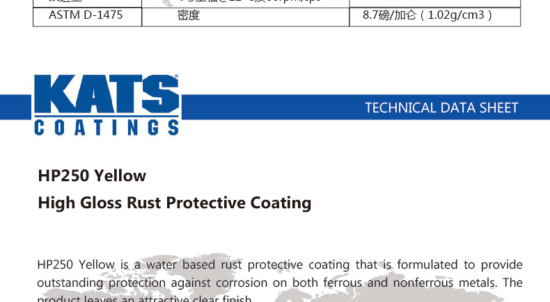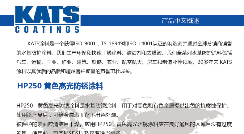 美国 凯斯 KATS 高光防锈涂料 涂层黄色