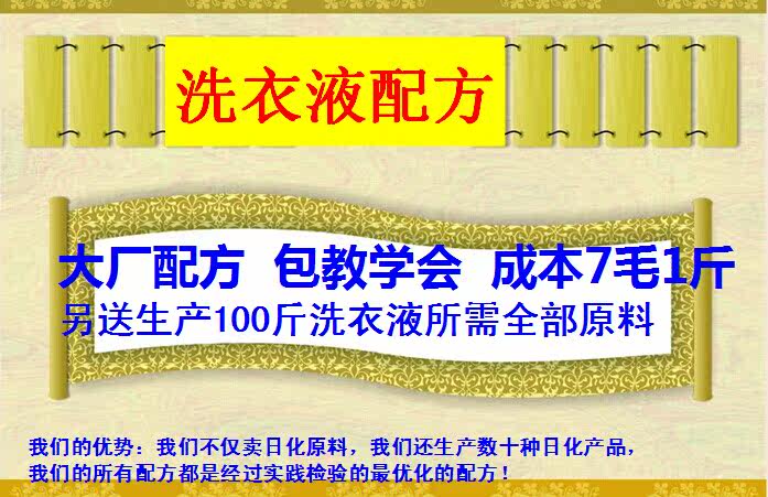 现在买配方,我们免费送您能生产100斤洗衣液所需要的全部原料。