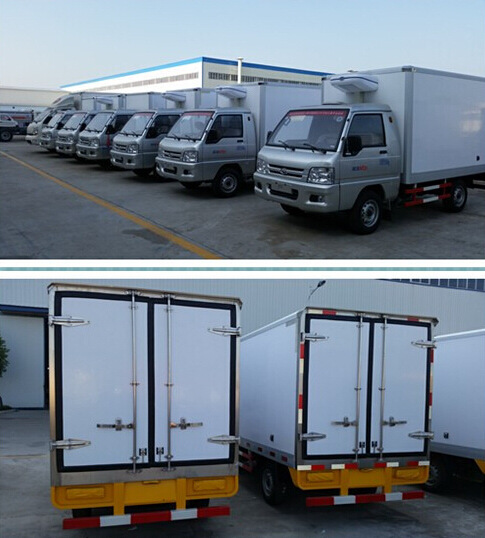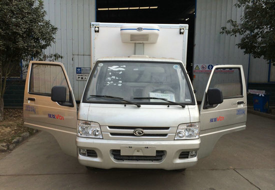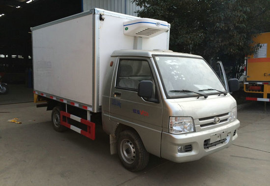 福田驭菱冷藏车:厢长2.6米,轴距2.37米,同样是汽油发动机,上蓝牌的标准,柳州五菱61马力,一般可以拉到2吨以下货物,价格便宜。