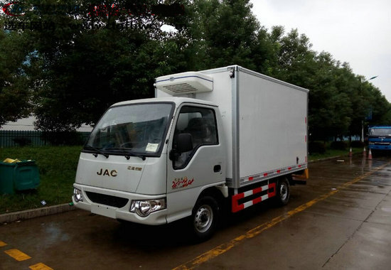 江淮好微冷藏车:厢长3.1米,轴距2.6米,汽油发动机,上蓝牌的标准,柳州五菱80马力,一般可以拉到3吨以下的货物,价格便宜,拉的货物多,是性价比最高的一款。
