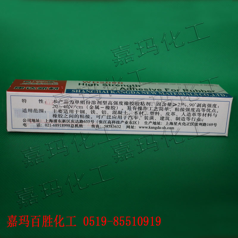 “万达牌”WD2080强力橡胶胶粘剂是专门用于金属、橡胶、塑料、木材、混泥土、皮革等的自粘或互粘的单组分溶剂挥发干燥型,具有操作工艺简单,粘接强度高等优点。