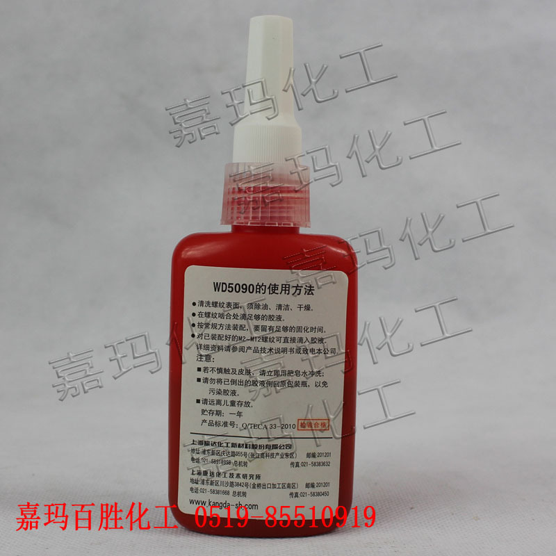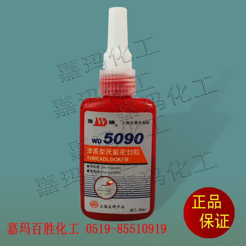 “万达”牌WD5090厌氧胶为低高粘度、高渗透厌氧胶, 适用于金属焊封、铸件砂眼的渗透密封和M2-M12螺纹锁固和密封. WD5090厌氧胶的技术性能与乐泰LT290相当。