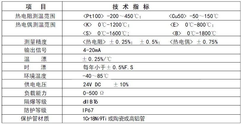 T1000 一体化温度变送器将温度传感元件(热电阻或热电偶)与信号转换放大单元有机集成在一起,用来测量各种工艺过程中-200-1600℃范围内的液体、蒸汽及其它气体介质或固体表面的温度。它通常和显示仪表、记录仪表以及各种控制系统配套使用。