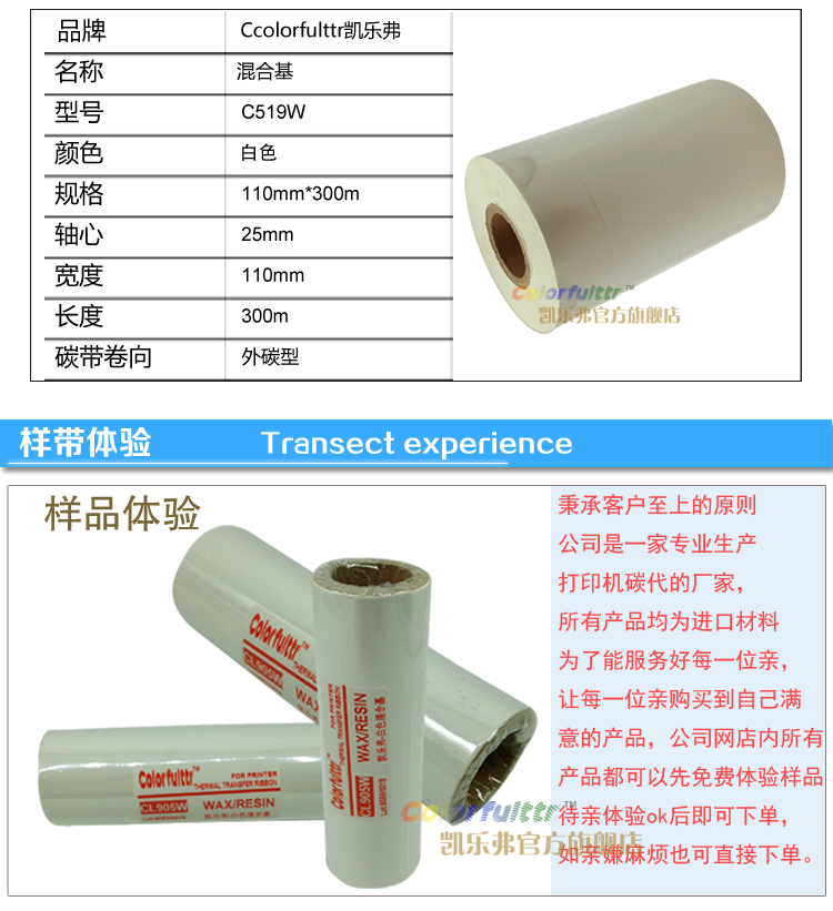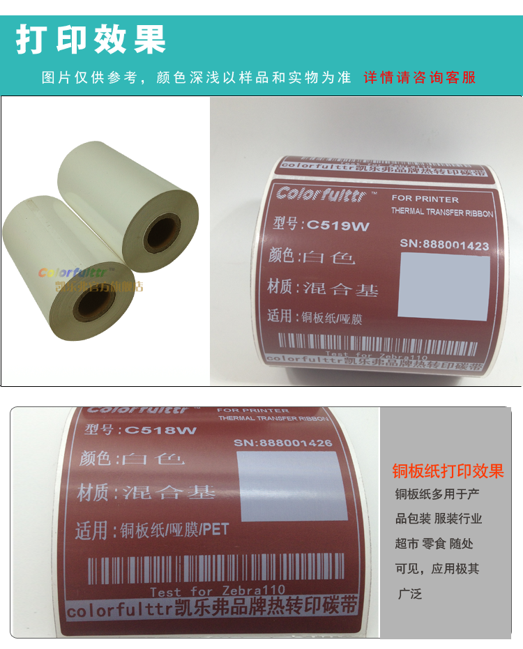 CL805混合基碳带 条码色带 打印哑膜PET colorfulttr.com凯乐弗