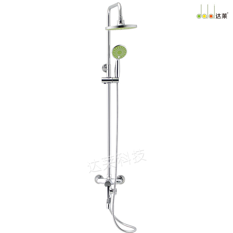 手持花洒:圆形花洒,ABS电镀,绿色面板(颜色可互换),二功能花洒:花洒水,按摩水,按键开关,轻轻一按自由切换