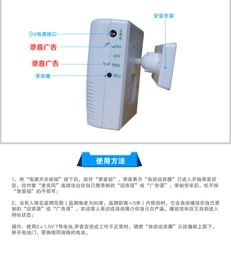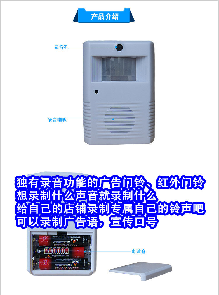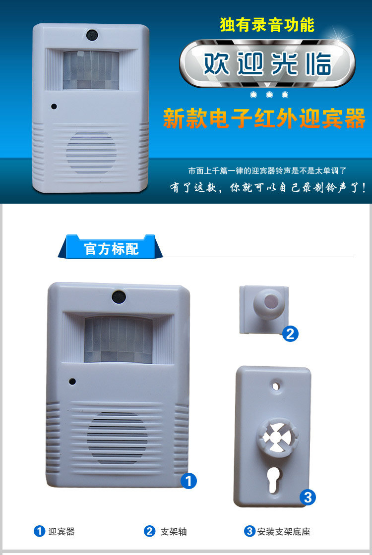 当有客人进入时,电子迎客门铃会发出您之前录好的声音。