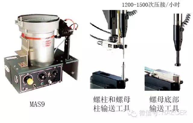 618PLUS可选配MAS (模块化自动送料系统),提供3倍于手动送料的压铆效率,使您能够在不更换自动送料盘的情况下自动分流,导入,输送螺母,螺柱和螺母柱。并可高速便捷地进行模具换型,2分钟内完成螺母,螺柱和螺母柱更换, 提供多达1,500件紧固件送料/ 小时的输送速度。