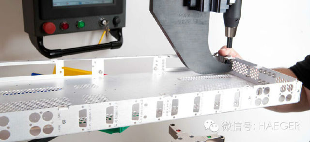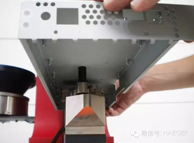 仅需几秒即可将自动上送工具变换为J型钩!用于各种预成型工件时更具吸引力。Haeger J型钩解决方案允许U型折弯件下方边角最小宽度为1mm。