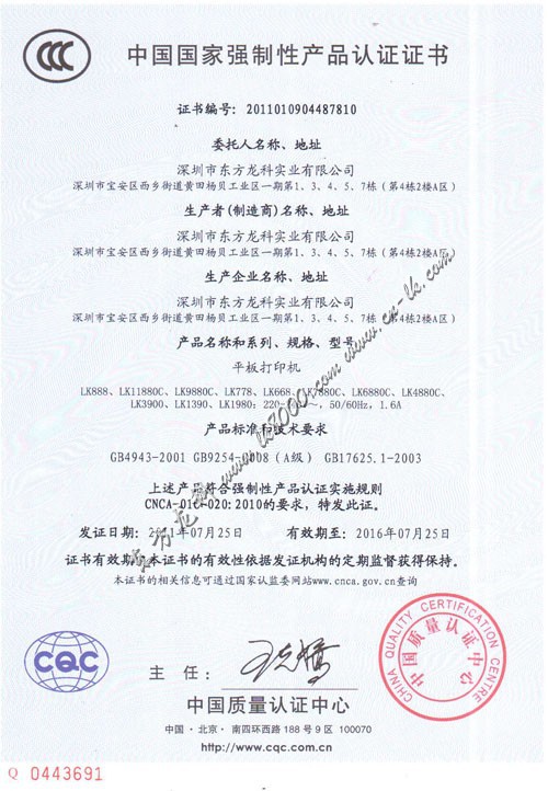 深圳市东方龙科实业有限公司 坐落于深圳市宝安区,是全国第一家生产万能平板打印机的专业厂家。 经过十余年发展现已成为占地5000平方米,专业技术人员40余人,员工200余人专业生产万能平板打印机的权威公司,深圳市东方龙科万能平板打印机有A4 A3 A2 A1 A0 A++等几十款机型,(也可分为经济型万能平板打印机、加长型万能平板打印机、高速型万能平板打印机等型号),以及服装专用机·玻璃移门专用机 ·高精度UV平板宽幅数码喷绘机 ·UV平台喷绘机 ·平板玻璃喷绘机 ·UV平板喷绘机 ·亚克力PVC平板喷绘机.(日本爱普生.武藤.精工)专用进口机型。