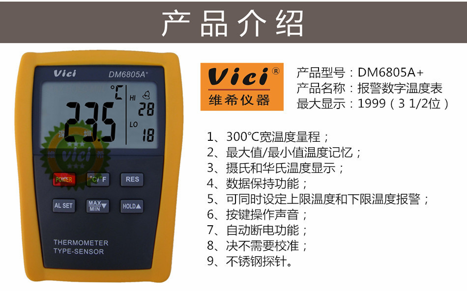 DM6805A+ 远距离测量智能报警数字温度表 维希特VICI
