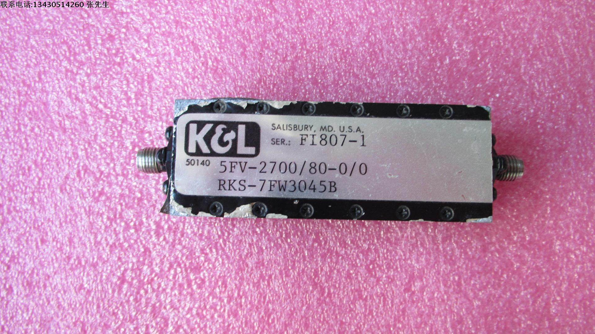 美国K&L进口 5FV-2700/80-0/0 2.7GHz SMA母 RF 射频微波同轴带通滤波器