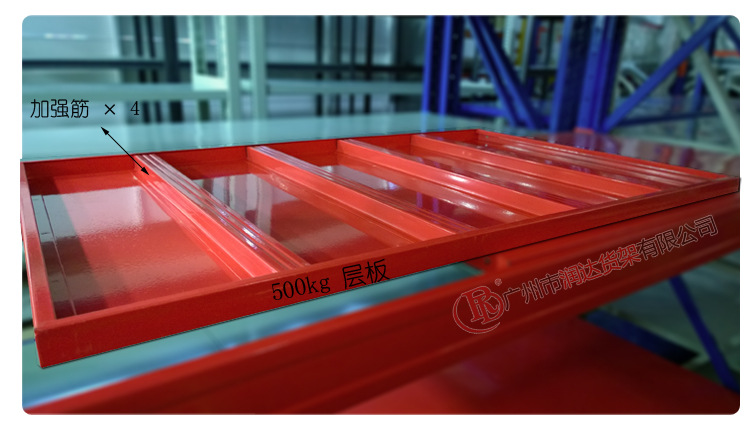 仓储货架RD-9#层载300kg的层板使用3根加强筋;层载500kg的层板使用4根加强筋;层载1000kg以上的层板,使用5根以上的加强筋!