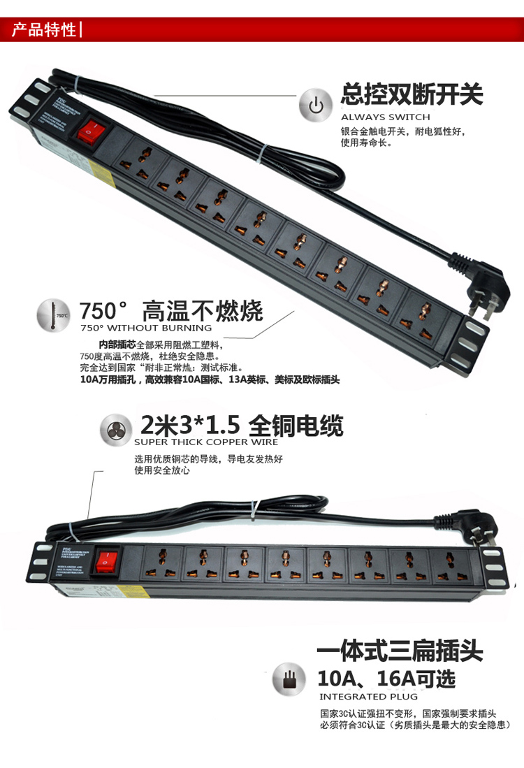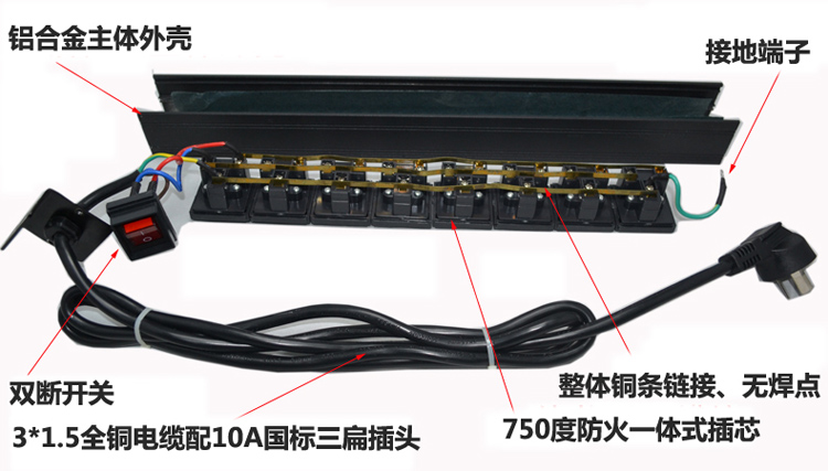 8位3*1.5mm平方带开关10A插头2米线8位3*2.5mm平方带开关16A插头2米线