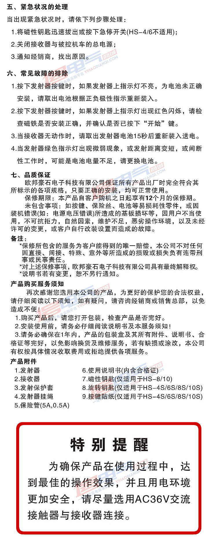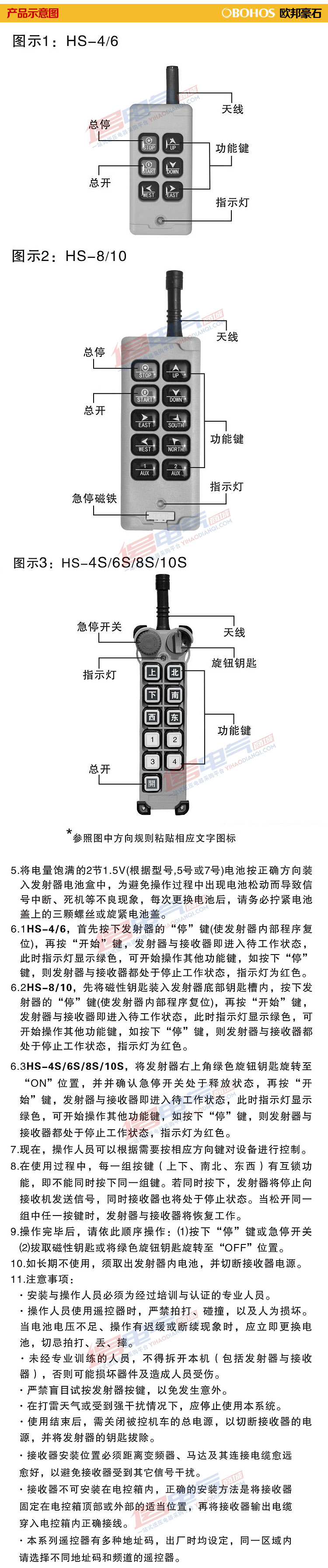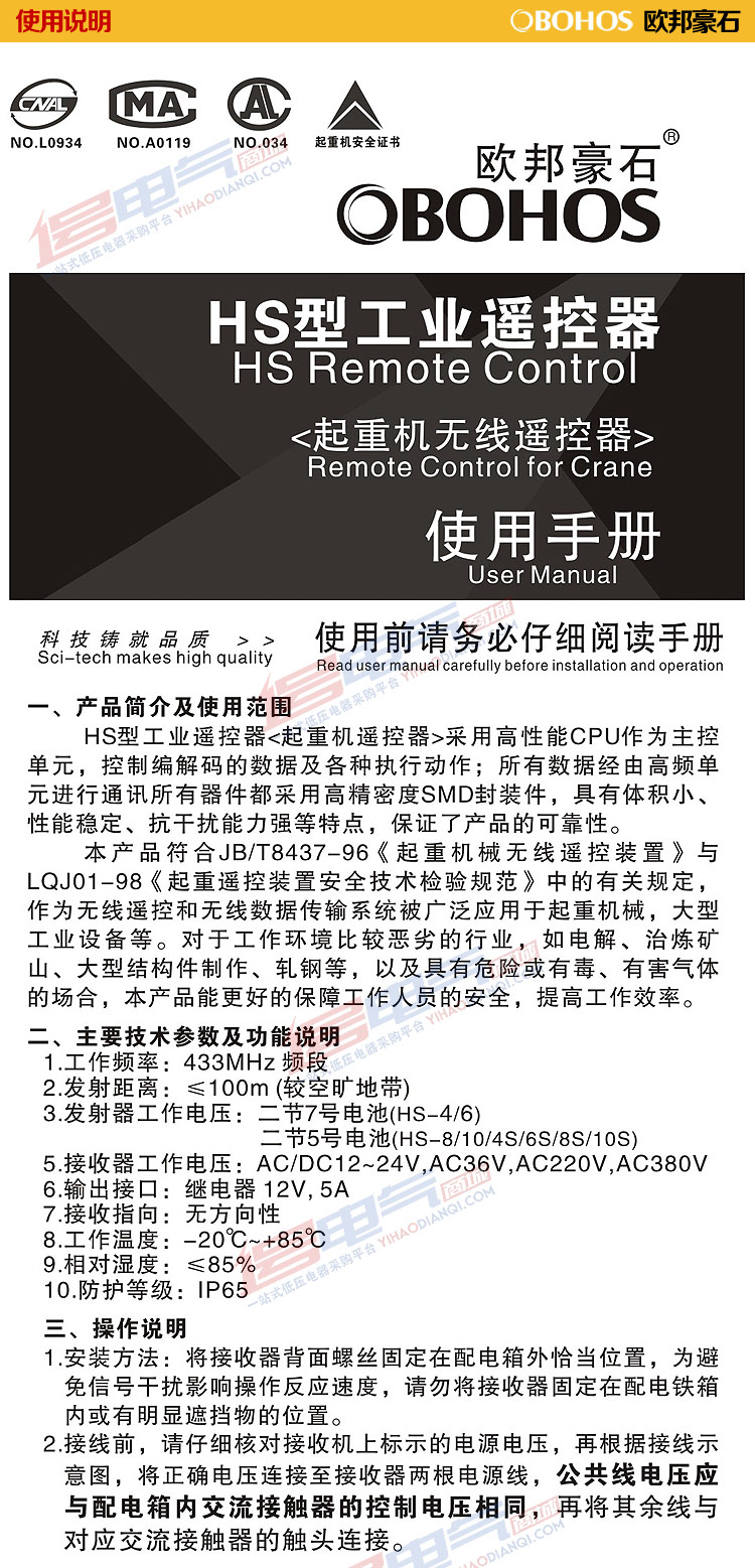 正品 欧邦豪石HS-J 无线工业遥控器起重机