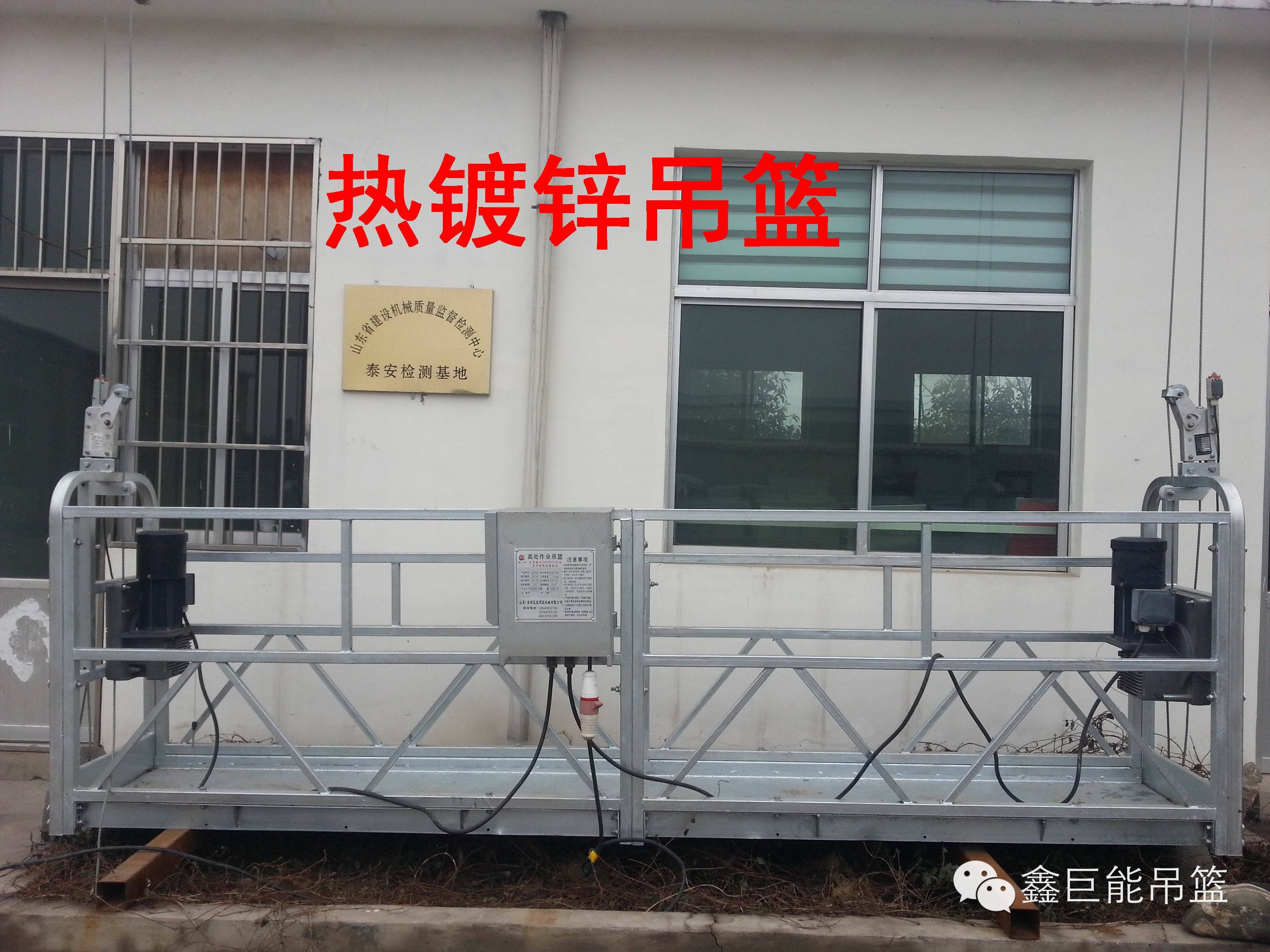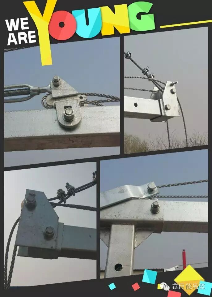 载重:630kg;钢结构为Q235碳钢,底盘和提升机架均采用一次性折弯成型,大大增加了吊篮本身的承重能力和使用年限。我们鑫巨能吊篮钢结构重达530kg,吊篮自重840kg(不含配重)。