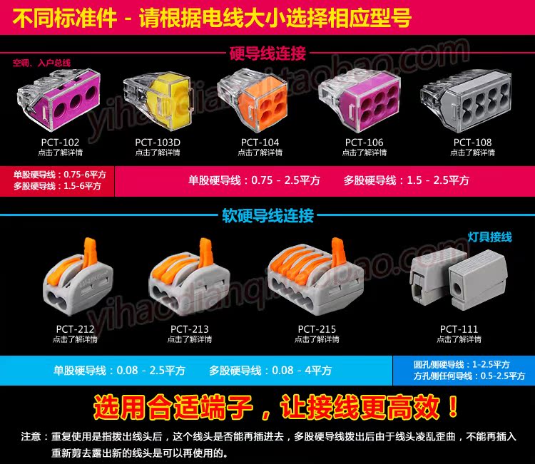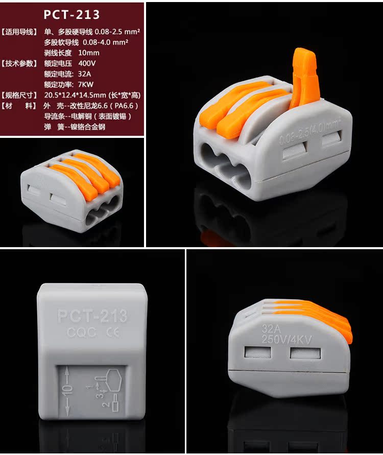 家用电线连接器1-6平方导线 电线连接器 PCT-174装修端子