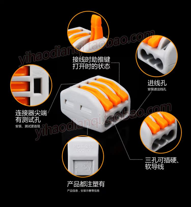 3孔迷你电线连接器PCT-213导线连接器家用电线端子压线式端子