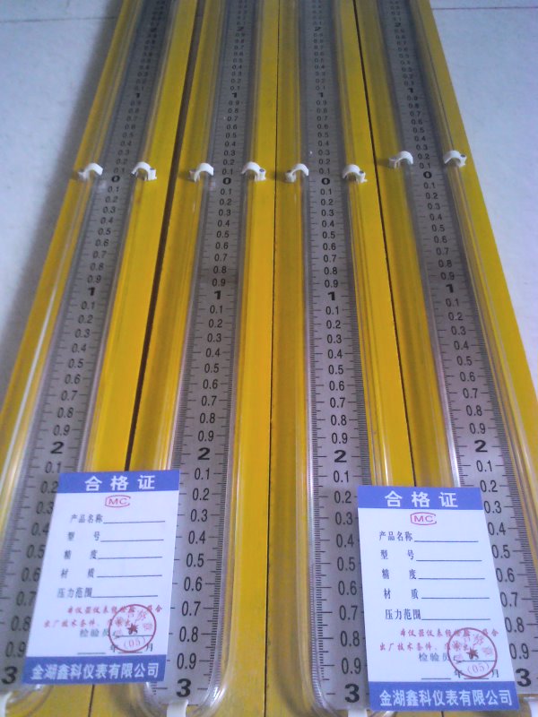 3、测量前必须注意所有压力计的最大量度应大于或等于被测压力,以防工作液冲出玻璃管口。