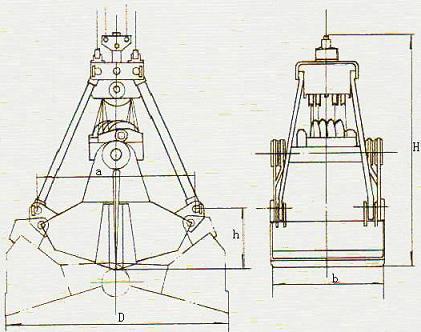 四绳抓斗主要与具有两组起升卷筒的桥式或门式起重配套使用,抓取各类松散的堆积物,进行装车、卸车、转堆加料等作业。根据抓取物料类别和用户要求可设计带齿的、平行大梁张开、水下作业等形式。