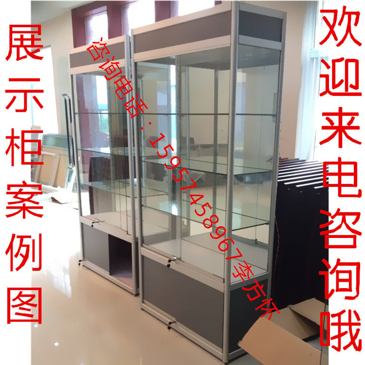 靠墙摆放的展柜背板为不透光板,可选与柜体外观一样的颜色、白色或者镜面。顶部可装灯箱片,柜内灯可选日光灯、射灯,顶部带灯箱。高度、宽度、长度可以根据使用调整。方形的展示柜一般为四边透光玻璃,适合以展示珠宝、首饰、手表、手机、眼镜、药品等小件物品,还可以用于展示礼品、工艺品、电子产品、笔、烟酒等较大件物品。