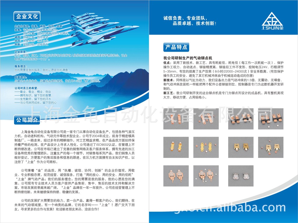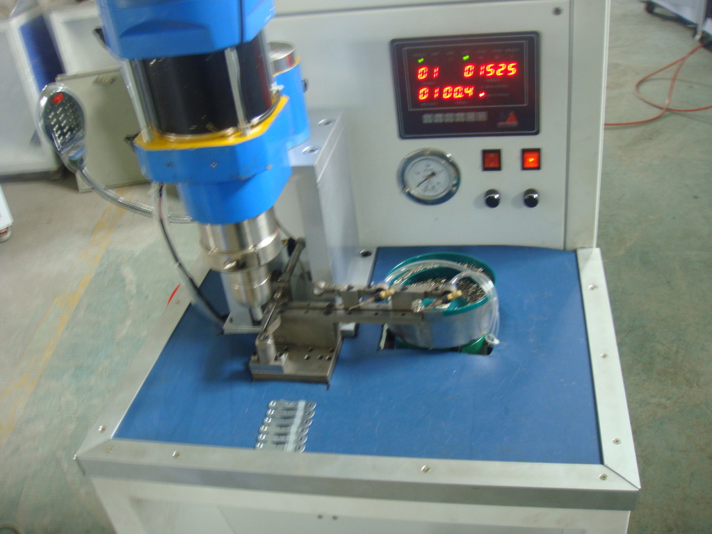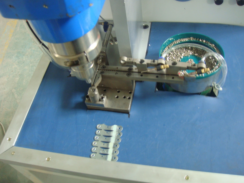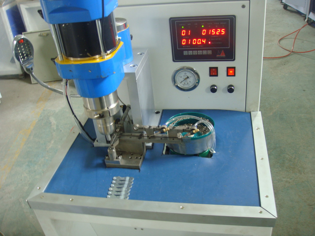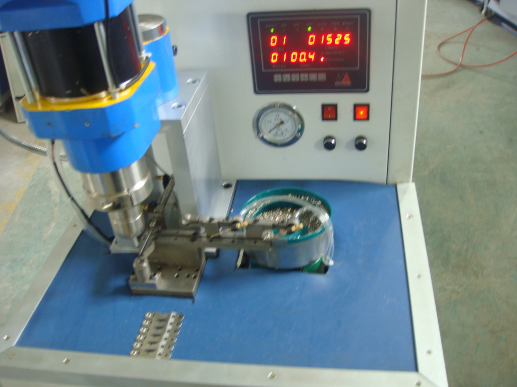 采用了新技术、新工艺、具有耗能低、耗电低(每工作一次耗能一次)、保护操作工视力、自动送点、铆接精度高、铆接后工件不变形、控制电压24V、行程调节5-35mm,有效的提高了生产效率(8小时/22000-24000次)安全系数高,(有效保护操作员工的安全,避免了其他机械冲床由于机械联动造成的伤害)