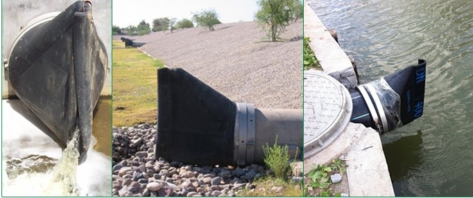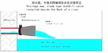 用于排放管道的末端裸露一定长度的场合,鸭嘴阀安装接口内径必须等于管道外径,阀门可以容易的套接在管道末端,调整好位置后用卡箍夹紧固定。