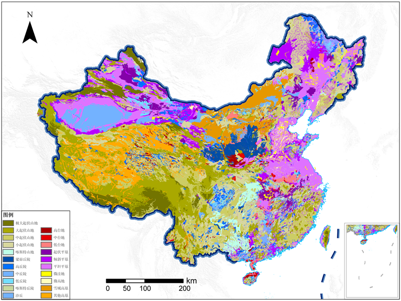 地貌是地域分异的主要指标和主导因子,地貌的形态特征、海拔高度、地面坡度、切割深度、坡向和物质组成等地貌差异,制约着光、热、水的再分配和物质的迁移,影响着土地利用方向、结构、布局和改造措施。地貌类型数据是区域土地利用重要的基础数据。