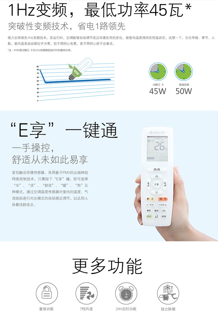 | 空调技术:变频 | 冷暖类型:冷暖型 | |