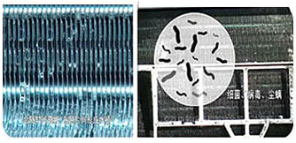 2 、空调使用一年或者几年之后发现 ,空调越来越费电。 | | 铝箔表面被氧化后亲水性下降,就形成水桥,吸附灰尘,滋生霉菌,时间久了蒸发器表面就会非常脏,造成换热效率大大降低,制冷、制热效果也随之大大降低;并且形成菌床之后,空调器就时时散发出臭味,房间空气也变得非常糟糕,空调病也随之而来。 |