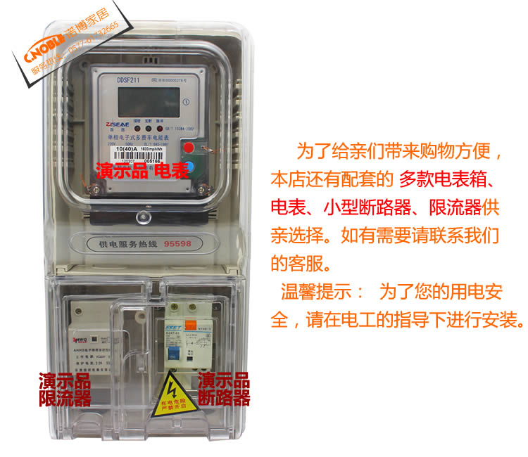 宝贝的安装效果(下图演示产品为本店正品华立透明电表效果图,非本款电表)。需要购买电表箱、断路器、限流器请联系客服购买!