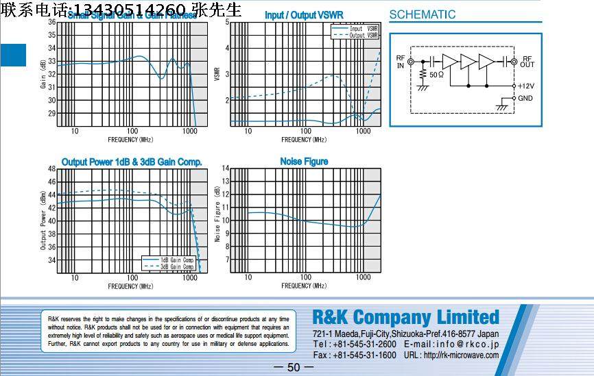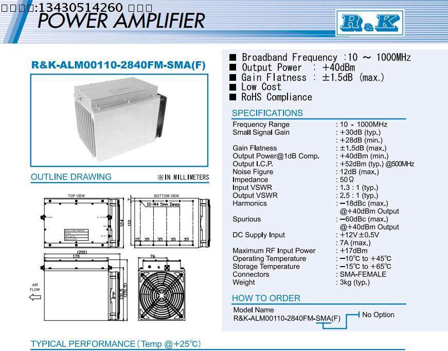 日本R&K进口 10-1000MHz 30dB 40dBm 10W SMA 射频微波宽带功率放大器