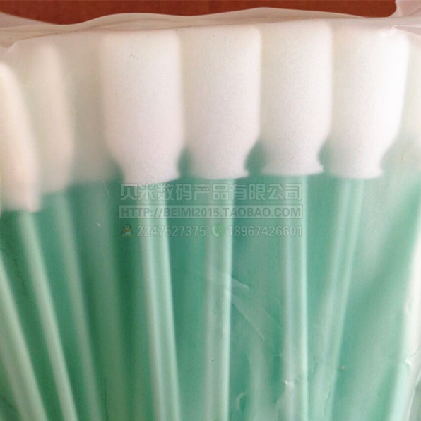 为喷绘机喷头、喷嘴表面清洁设计,采用优质原材料生产,开孔聚氨酯进口海绵压缩而成,耐腐蚀、开孔均匀,耐油性好,柔软安全不伤喷头;坚固的聚丙烯棉签杆,采用热熔技术,使其与头部牢固结合,有效防止因溶剂腐蚀而导致头部脱落;经无尘清洗。进口海绵头极度清洁,耐油性好。采用高温黏结是清洁喷绘机喷头喷嘴的好帮手!