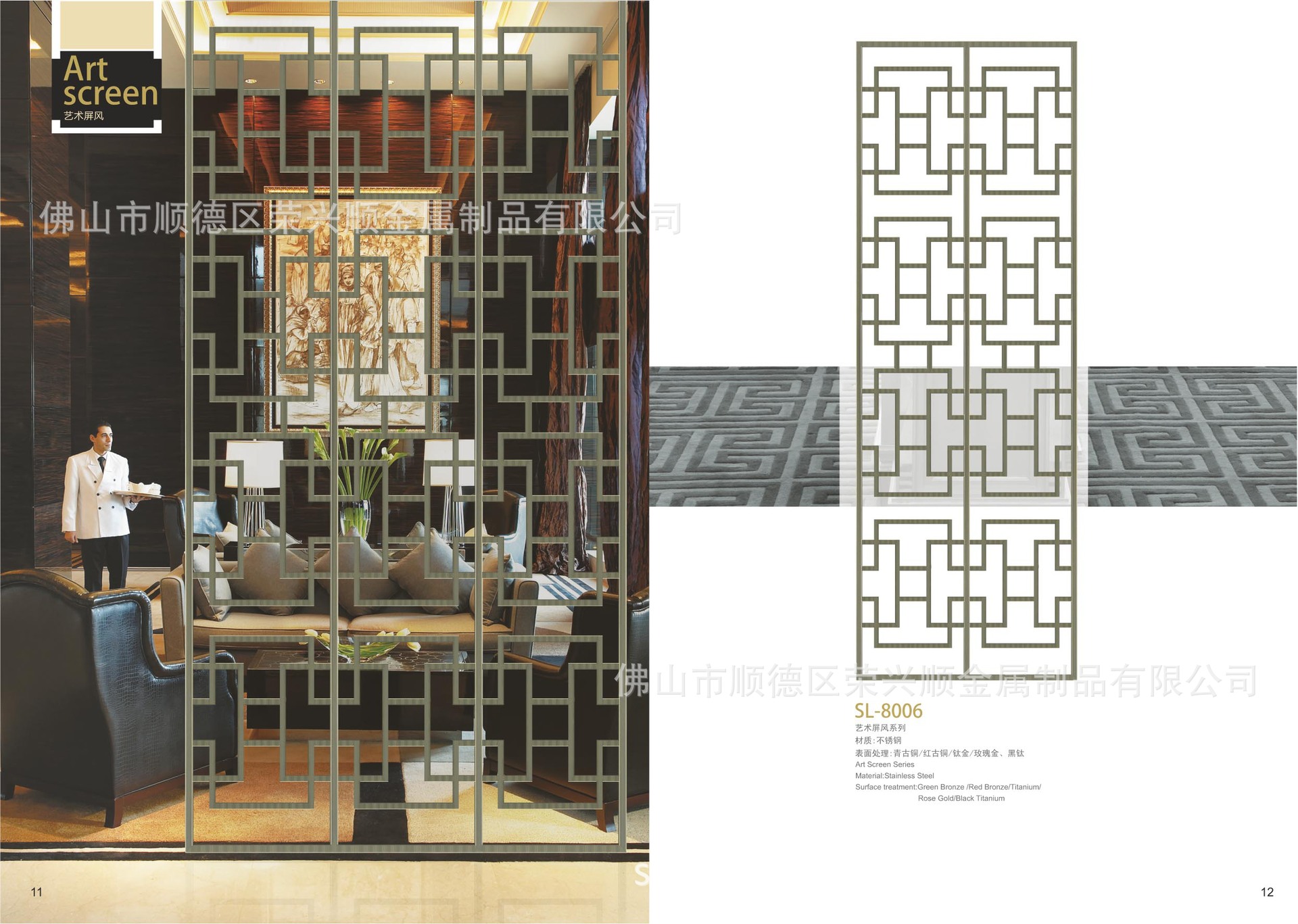 佛山市顺德区荣兴顺金属制品有限公司成立于2004年5月,原名佛山市顺德区陈村镇荣兴顺金属制品厂,2012年8月份转为公司,本公司坐落在中国不锈钢产业基地的佛山市,是一家专业从事建筑装饰五金和不锈钢精密五金加工的企业,产品涵盖:屏风、酒柜、不锈钢家具五金、不锈钢建筑装饰五金、工程配套五金,广泛用于高端酒店、会所、写字楼、商务广场、购物中心、品牌专卖店、酒吧。是业内最专业的生产厂家之一。