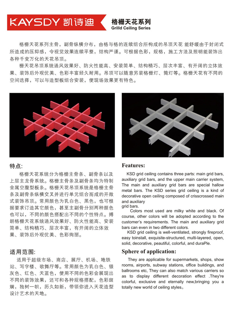 凯诗迪格栅天花吊顶系统广泛适用于商场、饭店、门厅、超市、娱乐中心等各种公共场所。