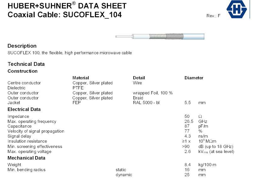 HUBER+SUHNER常用电缆型号: