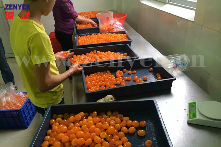 ①输送:采用不锈钢链条输送结构,卤蛋在滚筒上转动输送,保证蛋品洁净干燥;