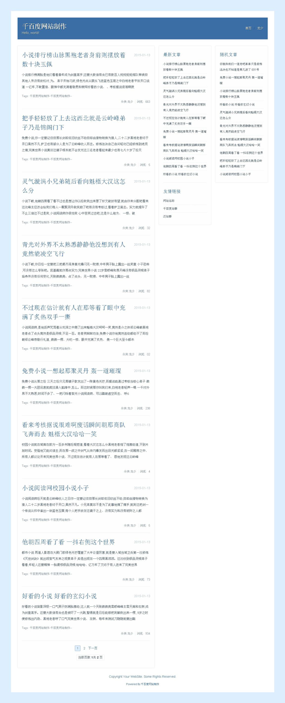 模版采用【龙少】【千百度站群软件】开发,此套站群系列模版,共65套,全部属于博客站,样式各具创意,更符合百度seo收录标准。以下为此商品部分效果图,有需要的可以直接购买,如果需要单买的,价格是,50一套,不议价,谢谢,另外也出售终身版软件,详情请咨询本店客服。 另外也接千百度站群软件的模版开发与制作,根据您要的模版数量进行报价。