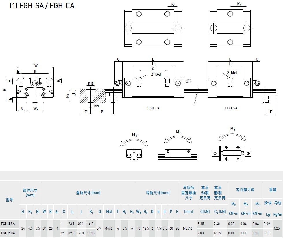 上银导轨EGH15CA尺寸图: