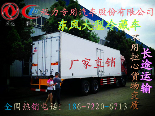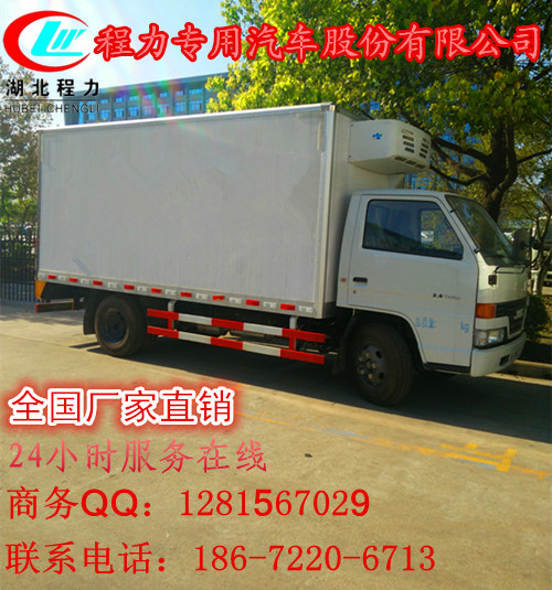 湖北程力特种厢式车厂高起点大投入,引近目前国际最先进冷藏车生产技术并斥巨资购置先进的发泡成型设备和18米大型复合板材生产线,制造出新一代冷藏保温车。生产的冷藏车厢体内外壁板选用优质的玻璃钢、不锈钢或彩钢板;中间保温材料选用8cm厚进口聚氨酯挤塑板;厢体周边铝合金包边;底板采用整体现浇玻璃钢。采用新技术、新工艺制造的冷藏车具有保温性能好、外型美观、整体质量轻、强度高、无渗漏等特点。厢板耐冲击性好,对大气、水和酸、碱、盐等介质具有良好的耐腐蚀性和抗老化性。经过优化设计,大大降低厢底板离地面高度,增大了车厢的有效容积,车辆行驶的安全性更高。厢底板选装通风槽,便于冷气流通全车,并保持厢内温度均衡。冷藏机组有知名的国产与进口机组选择,温度可达深冷要求,机组具有结构简单、操作方便运行可靠、能耗低制冷量大,噪声小安装维护方便等特点。冷藏车厢内部温度在零上5℃至零下18度可调节;一般零下5℃左右可用于牛奶保鲜车、蔬菜冷藏保鲜车、冷鲜肉运输车等;零下10℃及以下一般用于雪糕运输车及需要达到深冷的货物。