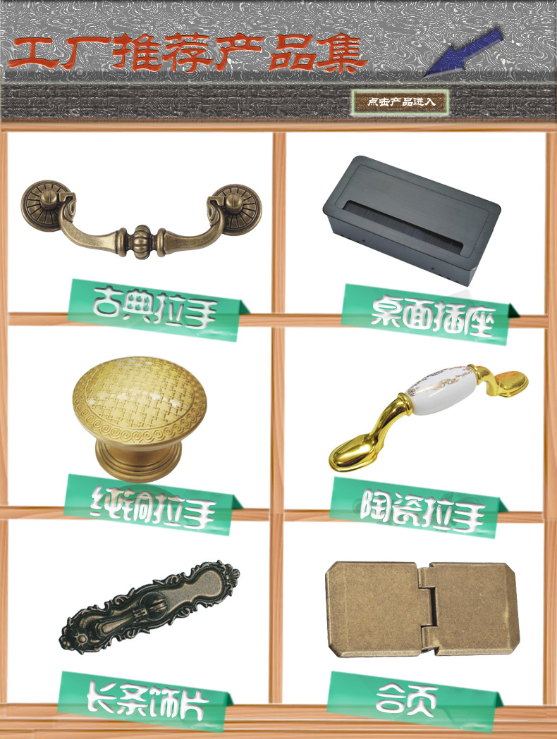 款式:有欧式仿古风格、田园风格、陶瓷系列、卡通小拉手等。
